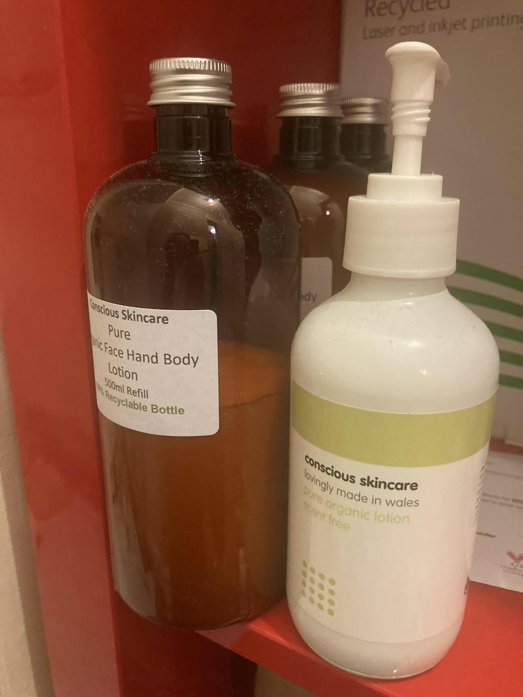 You can use this natural body lotion on all skin types, but it is especially designed for those with sensitivity and allergies. It is presented it in a recyclable 235ml glass bottle with dispenser (optional). A 500ml eco friendly refill bottle (made from 100% recycled plastic) is also available for topping up!